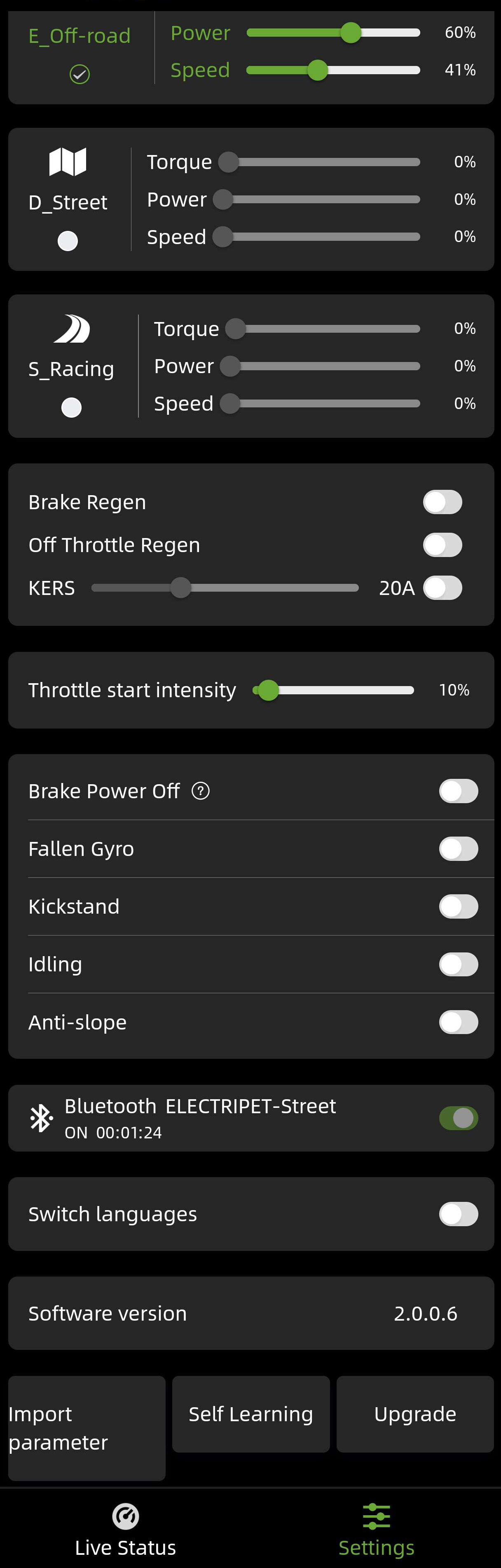 Предусмотрено три режима регулировки мощности: внедорожный, уличный и гоночный, причем вы можете свободно выбирать режим езды.